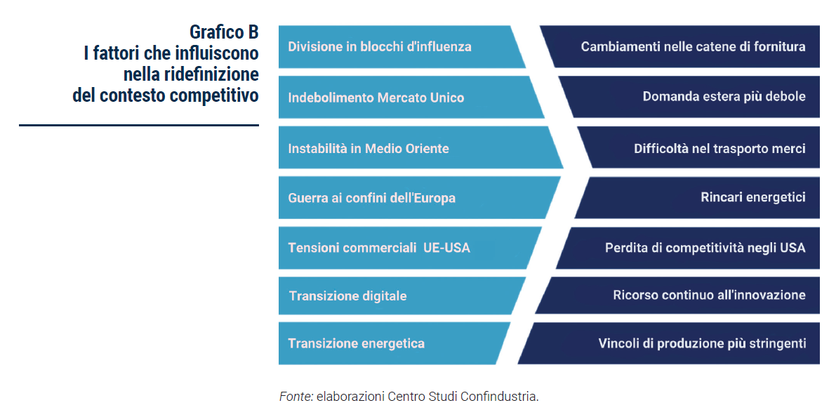 L’ampliamento della scala produttiva e la diversificazione dei prodotti per servire tutte le fasce della popolazione all’interno dei paesi Un elemento chiave del successo cinese sui mercati internazionali si è rivelato quello di riuscire a produrre e vendere a tutte le fasce di acquirenti, quelle meno abbienti in primis (quegli oltre 5 miliardi di individui che devono fare affidamento su redditi inferiori ai $15.000). Questo ha fatto da volano alla creazione di un’ampia base logistica per il trasporto delle merci Made in China in tutto il mondo, anche verso quei paesi che per ora importano pochissimo dall’Italia o da paesi con strutture di costo simili alla sua. Per le imprese italiane l’ampliamento e la diversificazione della base produttiva non possono che passare per un utilizzo massiccio della robotica potenziata dall’intelligenza artificiale, dato lo scarto in termini di fattore umano rispetto a un gigante come la Cina, che peraltro già è in corsa per contendersi la leadership con gli USA in ambito tecnologico.