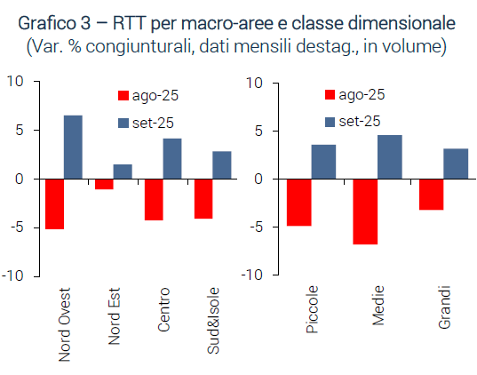 • RTT a settembre è in aumento in tutte le aree geografiche, di più al Nord-Ovest dove maggiore era stato il calo in agosto (Grafico 3).